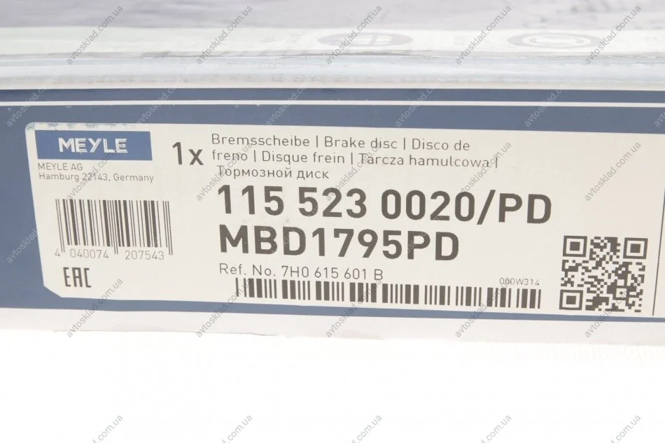 Диск гальмівний MEYLE 115 523 0020/PD