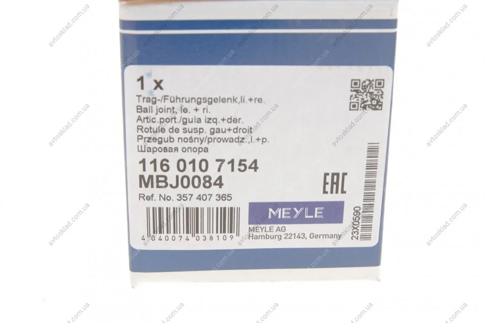 Комплекти в яких міститься "116 010 7154 MEYLE":