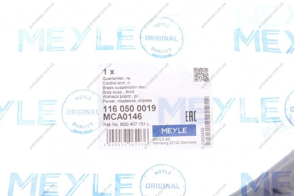 Важіль незалежної підвіски колеса, підвіска колеса MEYLE 116 050 0019