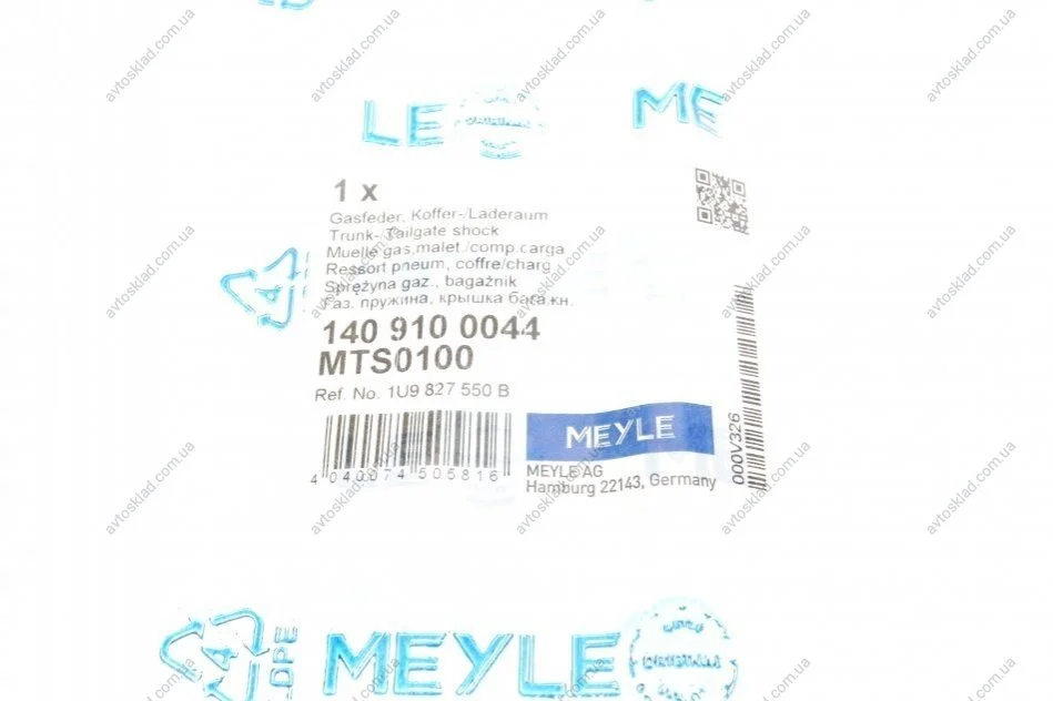 Амортизатор багажника SKODA MEYLE 140 910 0044