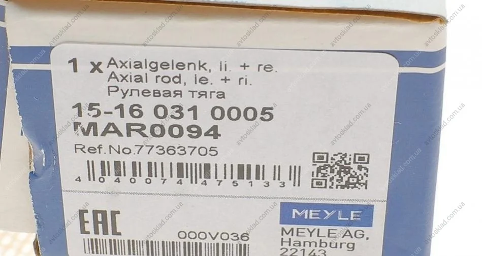 Тяга керма MEYLE 15-16 031 0005