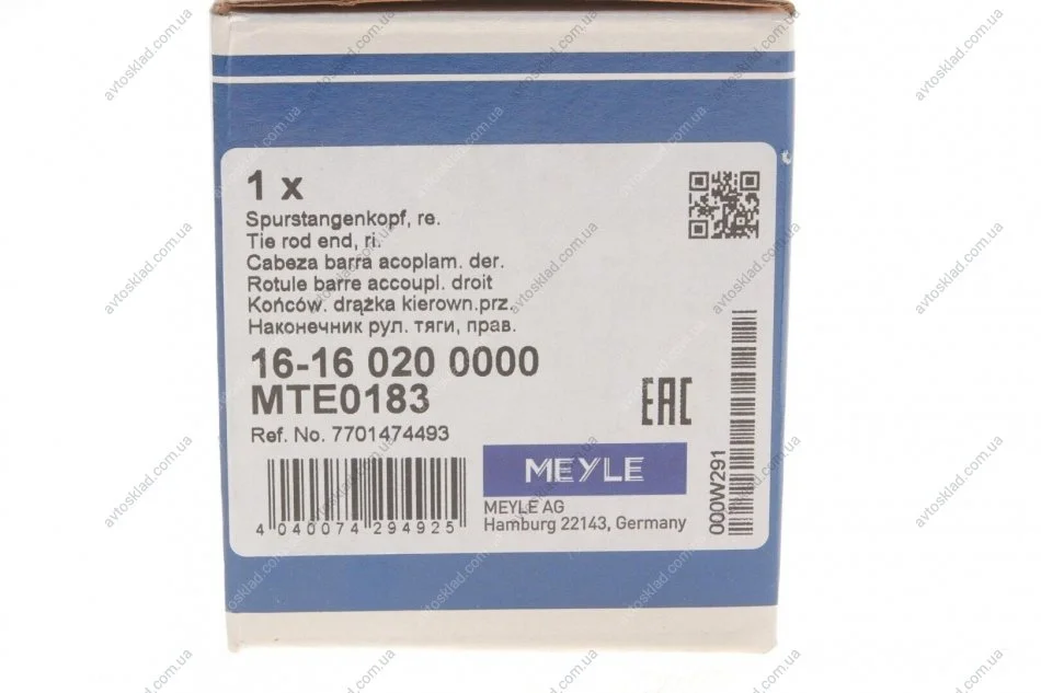 Накінечник рульової тяги MEYLE 16160200000