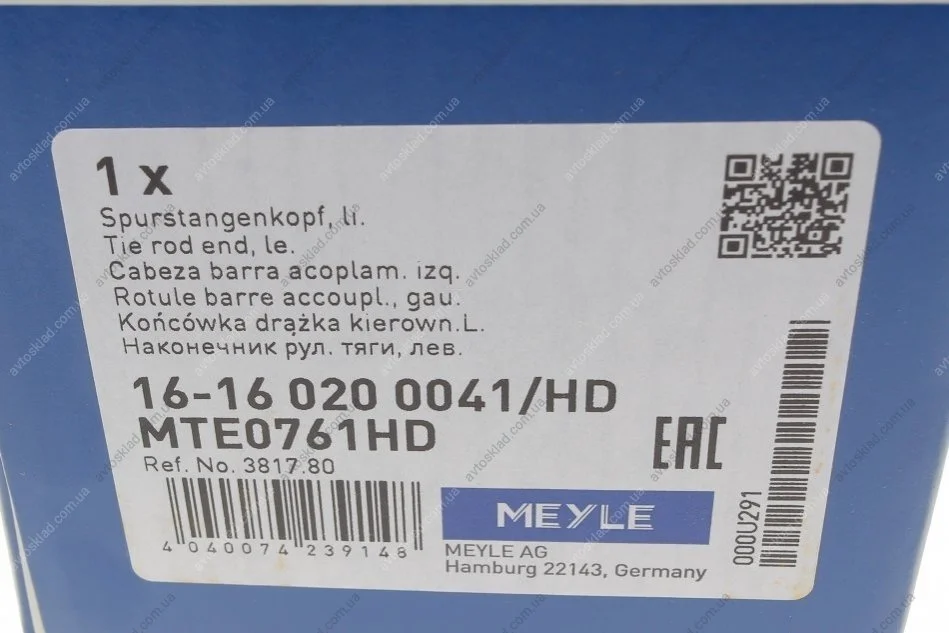 Накінечник кермової тяги MEYLE 16-16 020 0041/HD