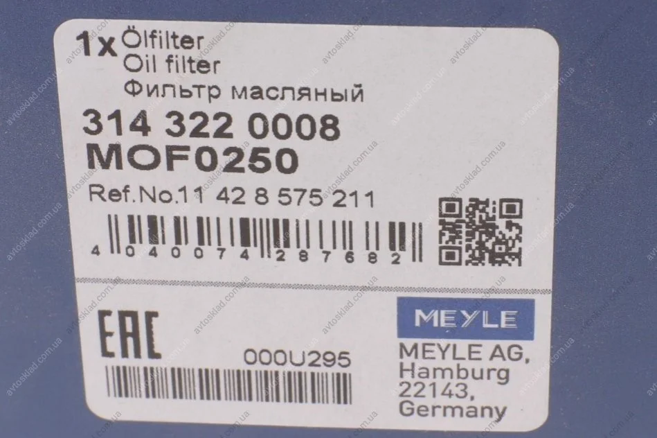 Фільтр масляний MEYLE 314 322 0008