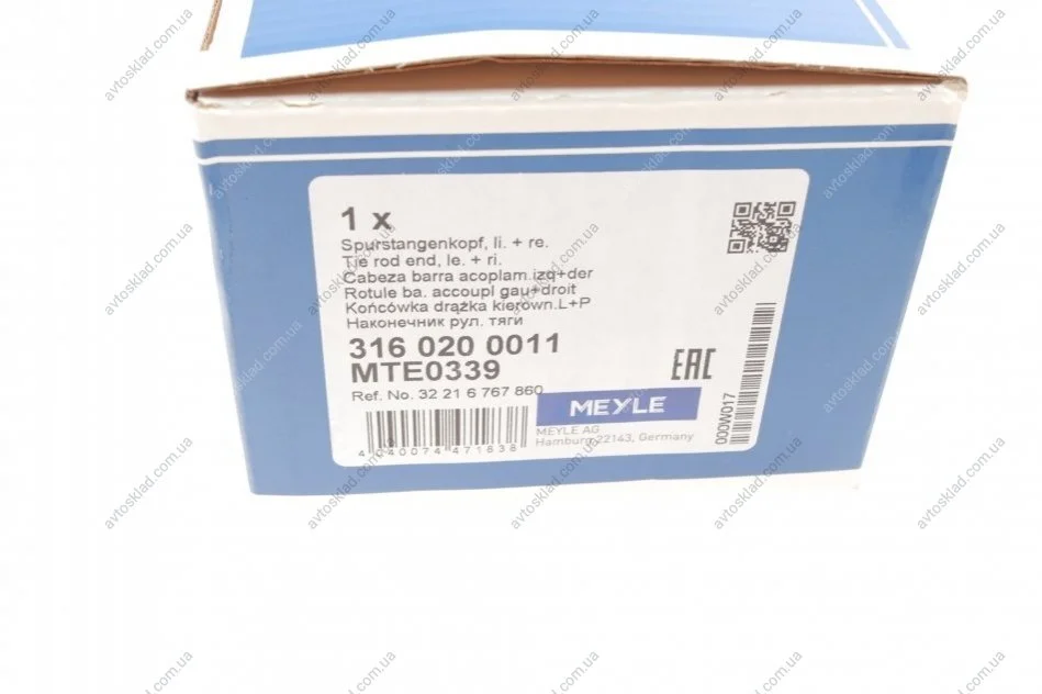 Накінечник рульової тяги MEYLE 3160200011
