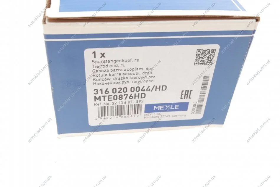 Накінечник рульової тяги MEYLE 316 020 0044/HD