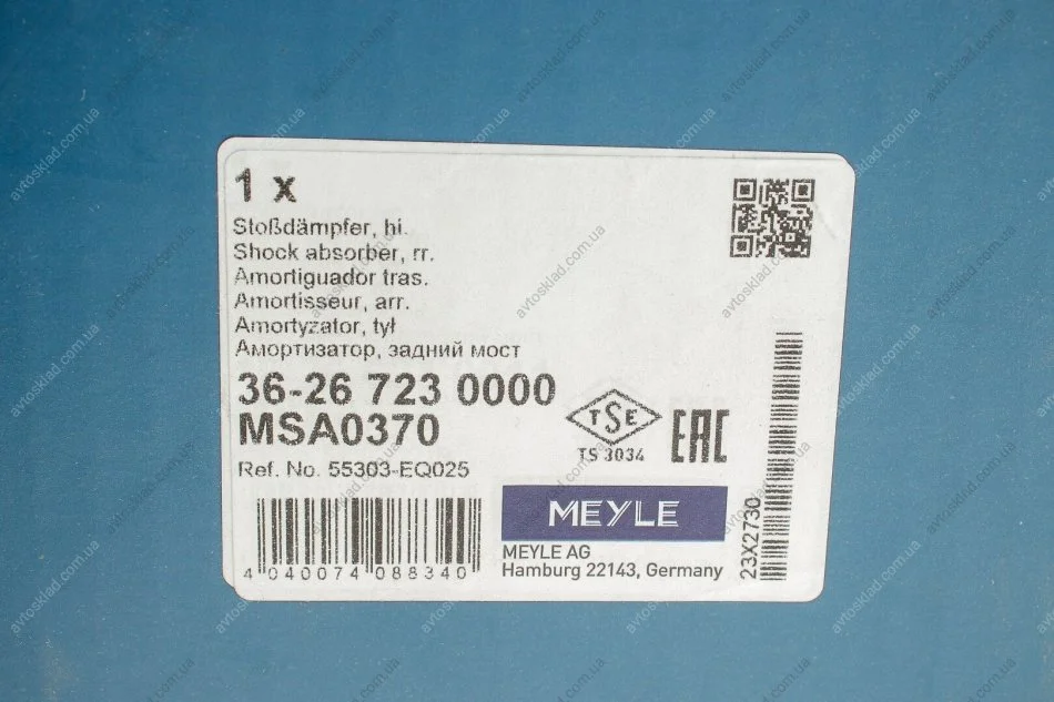 Амортизатор задній лівий MEYLE 36267230000