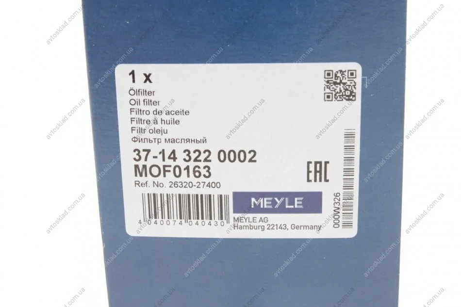 Фільтр масляний MEYLE 37-14 322 0002