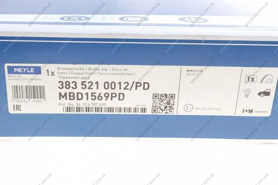 Диск гальмівний MEYLE 383 521 0012/PD