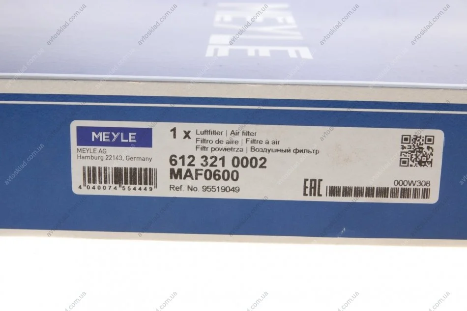 Повітряний фільтр MEYLE 6123210002