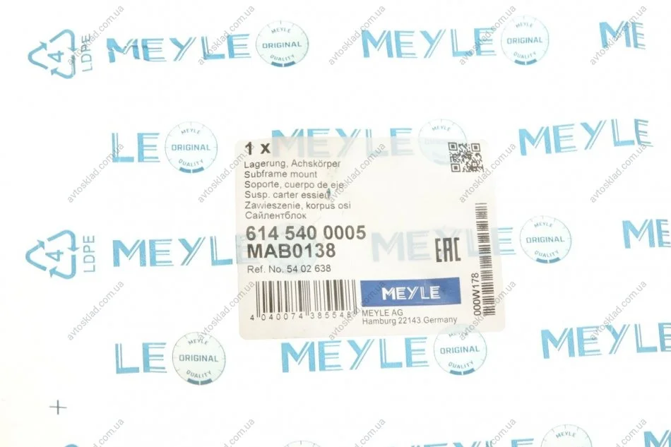 Сайлентблок балки підвіски MEYLE 6145400005