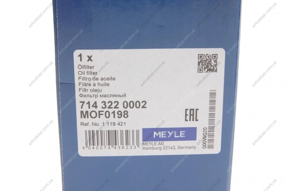 Фільтр масляний MEYLE 7143220002