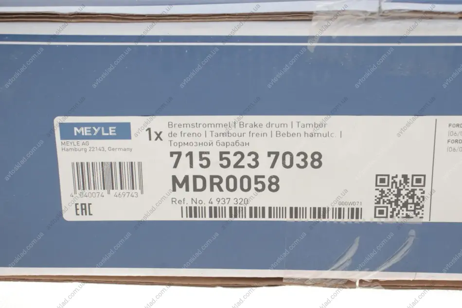 Барабан гальмівний MEYLE 715 523 7038