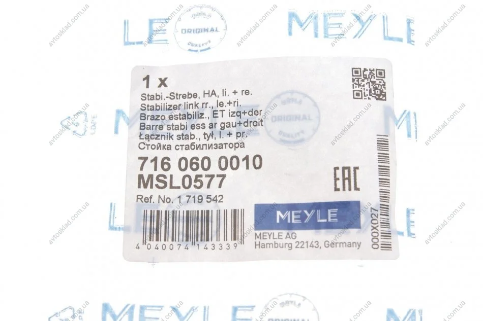 Тяга стабілізатора FORD FOCUS II, III C-MAX, VOLVO C30 03 зад. міст MEYLE 716 060 0010