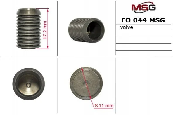 Клапан насоса гур ALFA ROMEO,BMW,FIAT,FORD,INFINITI,IVECO,MAZDA,MITSUBISHI,NISSAN,UAZ,VOLVO MSG FO044VALVE
