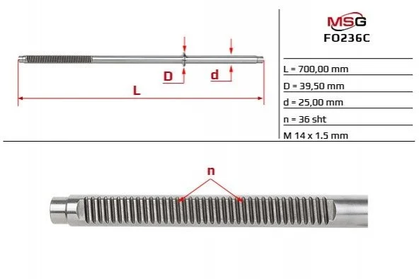 Шток рульової рейки з ГУР FORD FOCUS C-MAX 03-07,FOCUS II 04-14 TRW MSG FO236C
