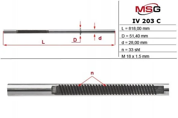 Шток рульової рейки з ГУР IVECO DAILY 1999-2006 MSG IV203C