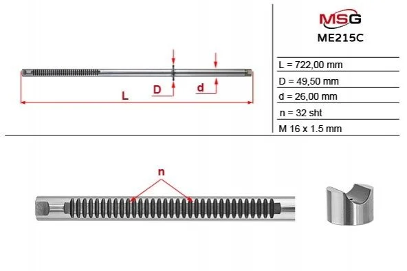 Шток рульової рейки з ГУР MERCEDES-BENZ VIANO (W639) 03-,VITO / MIXTO (W639) 03-,VITO (W639 MSG ME215C