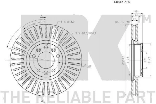 Гальмівний диск передній Citroen Berlingo, C4, C5 Aircross, Grand C4, Ds 7 1.2-2.2D 06.09- NK 203742