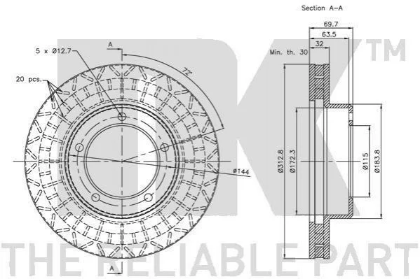 Диск гальмівний перед. Toyota Land Cruiser/Lexus LX470 98- NK 204597