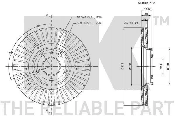 Диск гальмівний P Audi A4,A6Skoda Superb 1,8T-2,8 04.97- (312x25 NK 204773