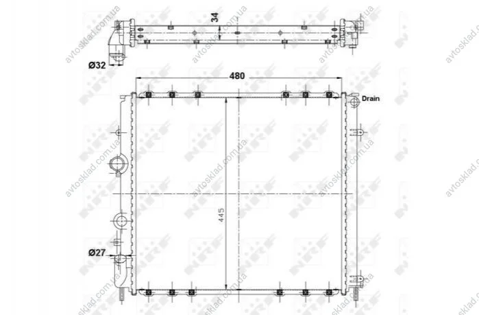 Радіатор Renault Kangoo 1.9D 10/97-/ 1,5 DCI 2001- NRF 58075