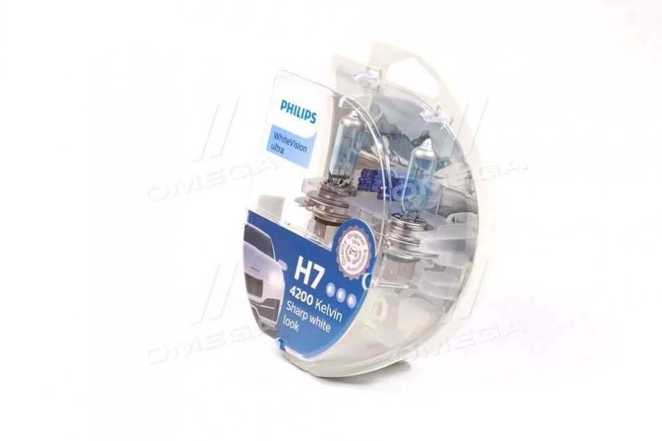 Лампа розжарювання H7 12V 55W PX26d H7 WhiteVision ULTRA +60 (4200K) (компл) PHILIPS 12972WVUSM