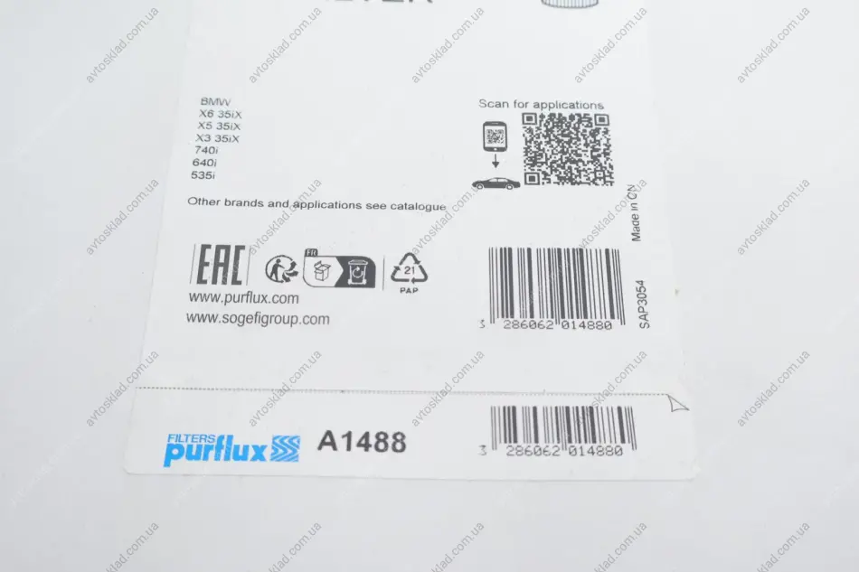 Аналоги "A1488 Purflux":