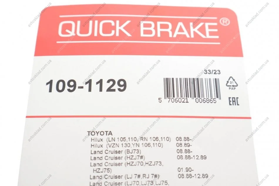 Монтажний компл.,гальм.колодки QUICK BRAKE 109-1129