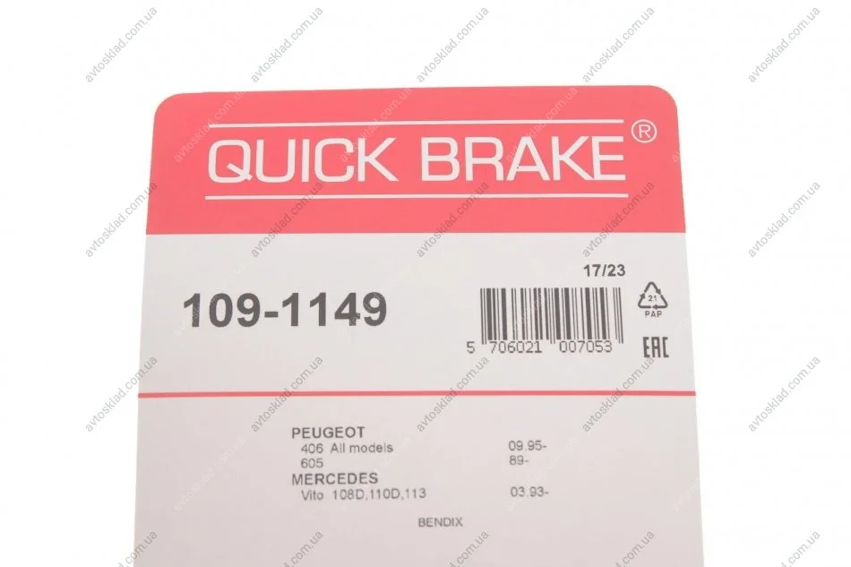 Монтажний компл.,гальм.колодки QUICK BRAKE 109-1149