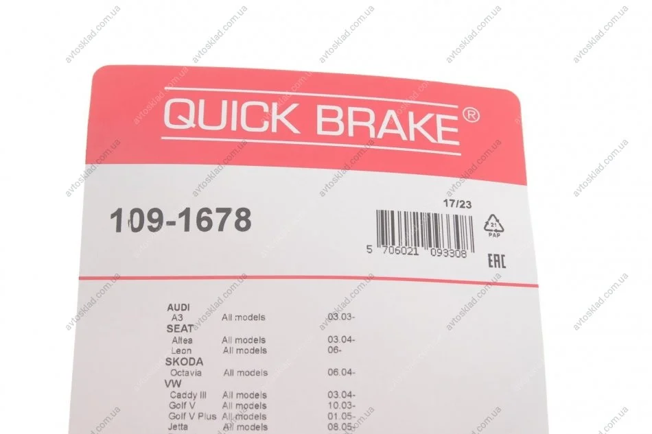 К-Кт монтажний колодок передній. VW Caddy III, Golf V/Plus, Jetta, Passat, Touran QUICK BRAKE 109-1678