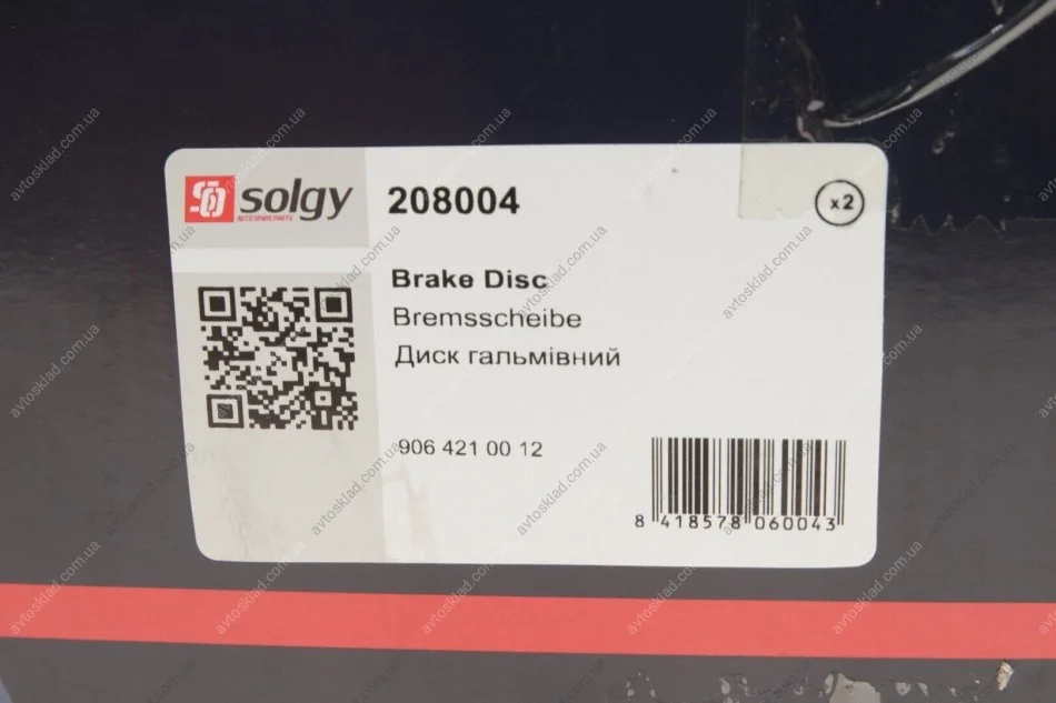 Диск гальмівний Solgy 208004
