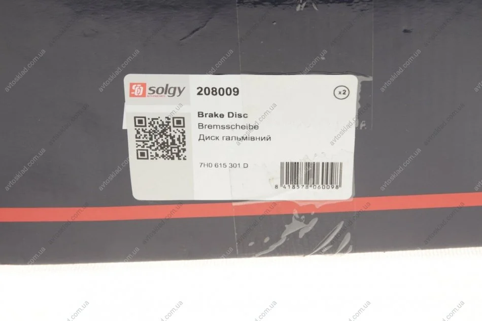 Диск гальмівний Solgy 208009