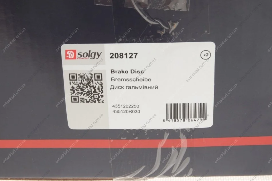 Диск гальмівний Solgy 208127