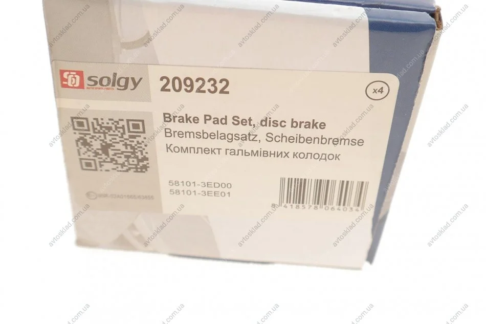 Комплект гальмівних колодок Solgy 209232