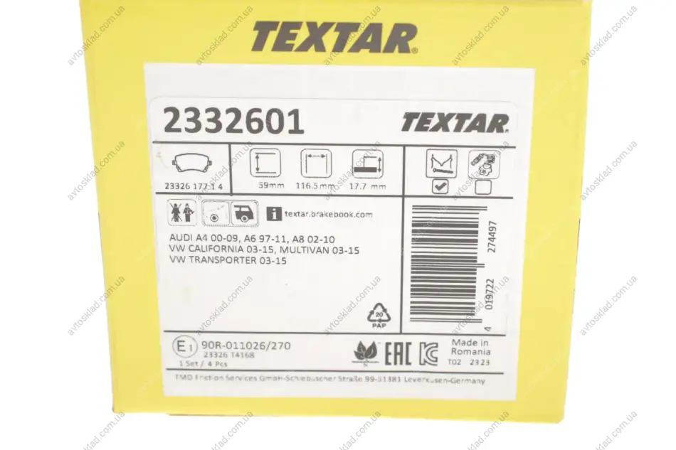 Аналоги "2332601 TEXTAR":