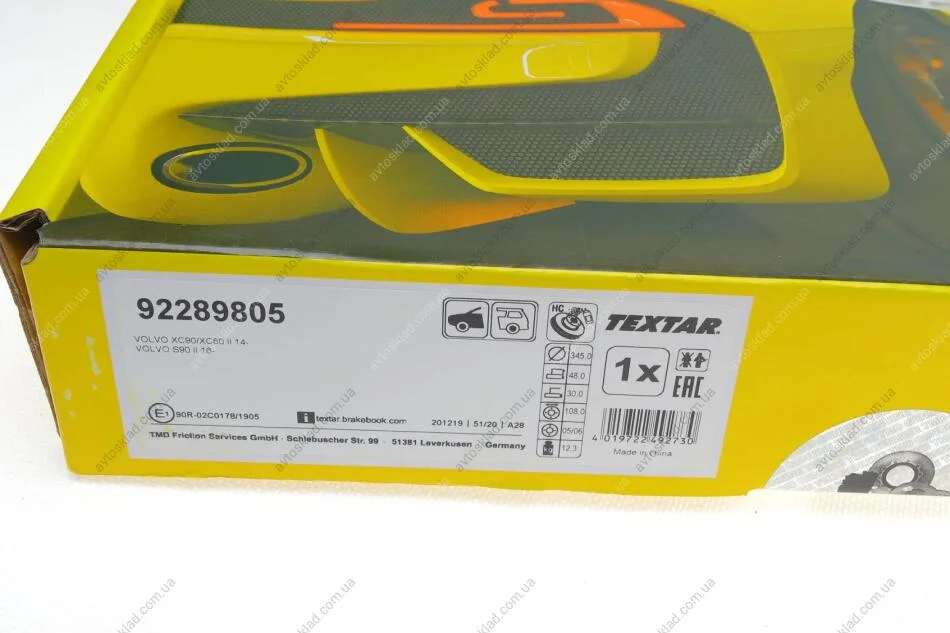 Диск гальмівний TEXTAR 92289805