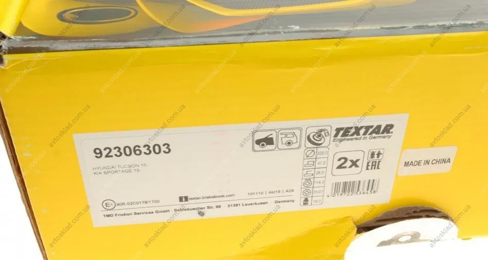 Диск гальмівний TEXTAR 92306303