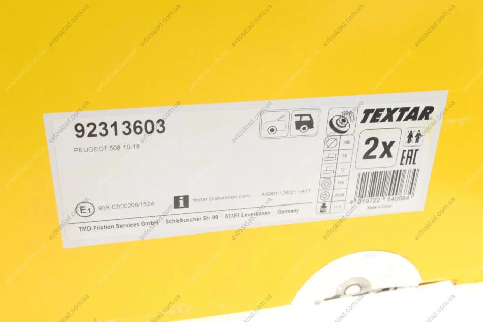 Диск гальмівний TEXTAR 92313603