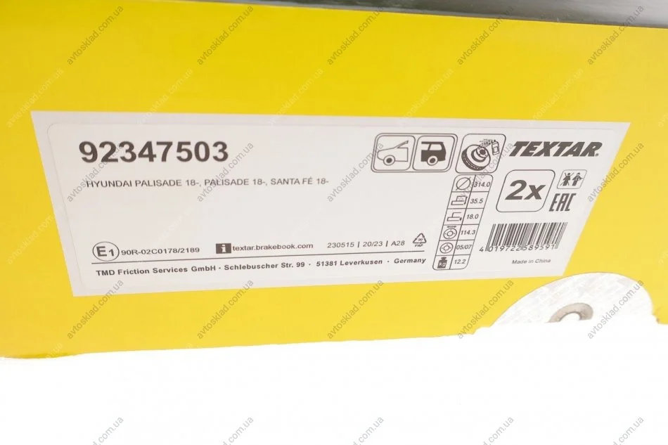 Диск гальмівний TEXTAR 92347503