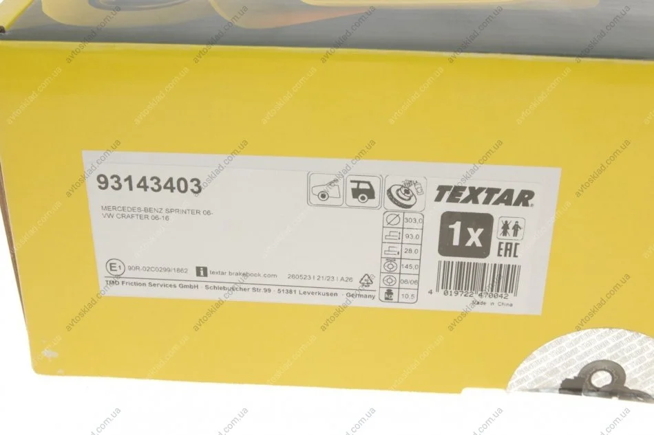 Диск гальмівний TEXTAR 93143403