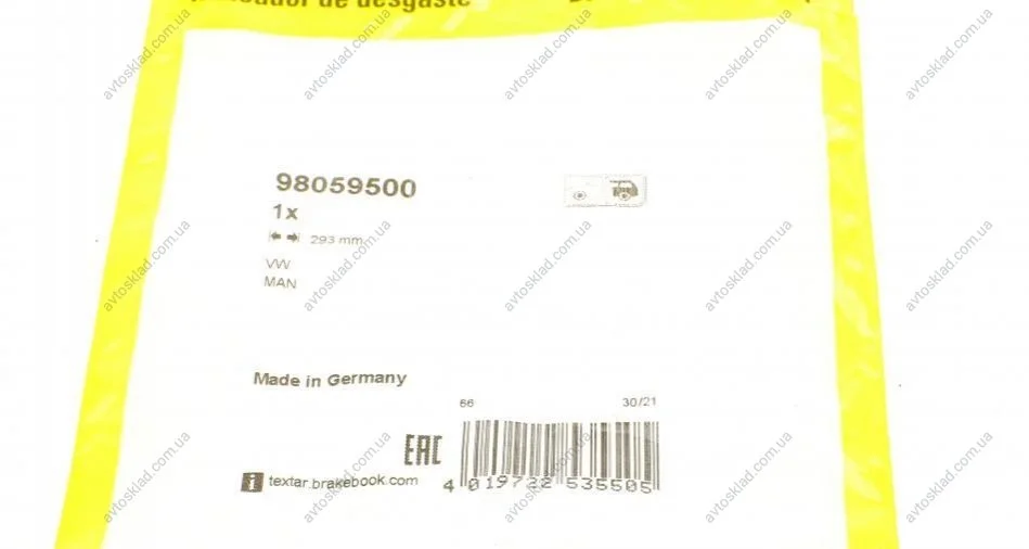 Датчик зносу TEXTAR 98059500