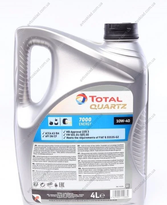 Олива моторна QUARTZ 7000 ENERGY 10W-40 4л TOTAL 214113