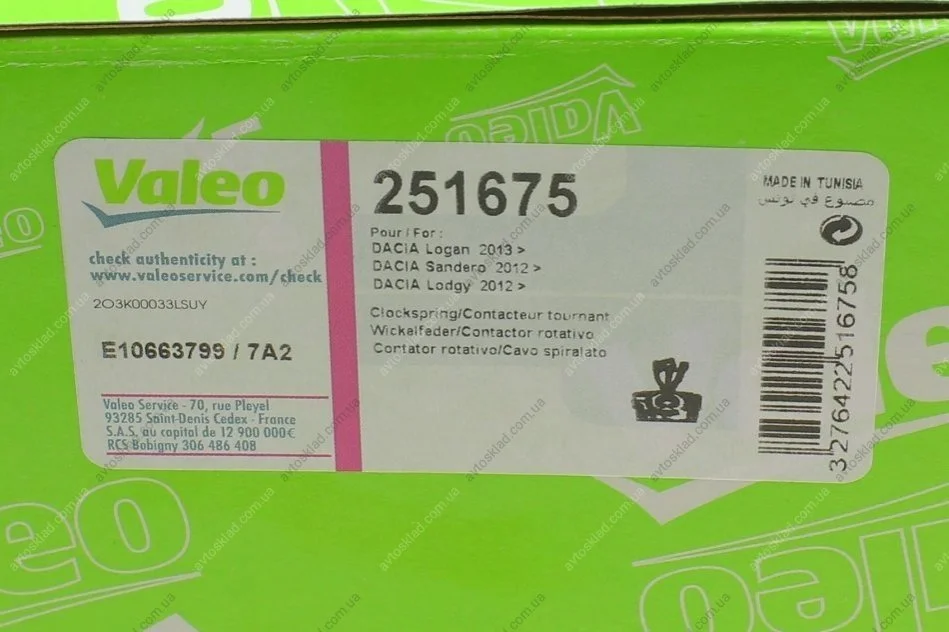 Віта пружина, подушка безпеки Valeo 251675