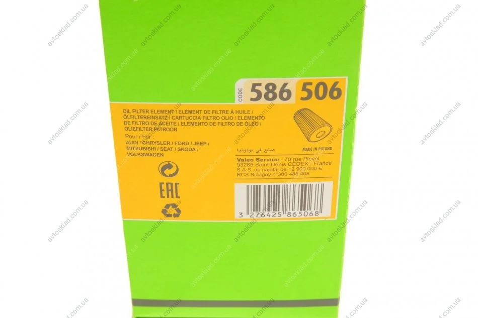Фільтр масляний Valeo 586506