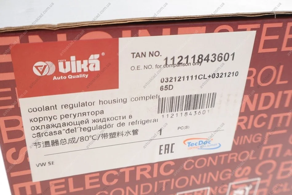 Корпус термостата із термостатом 80? та патрубком VW Polo (01-09)/Seat Ibiza (03-09) VIKA 11211843601