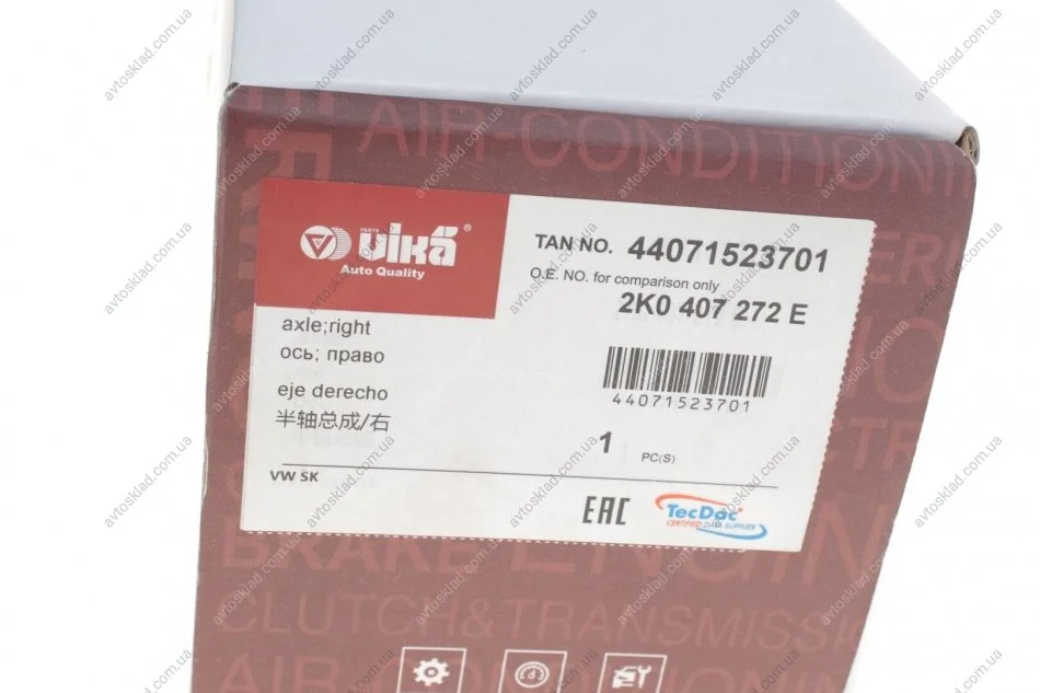 Вал приводний правий VIKA 44071523701