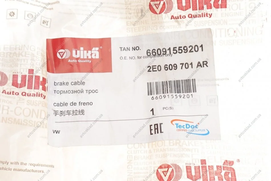 Трос ручника задній MB Sprinter 515 / VW Crafter 50 (06-) VIKA 66091559201