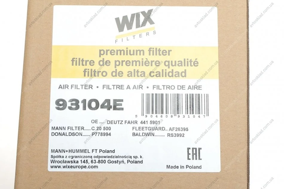 Аналоги "93104E WIX FILTERS":