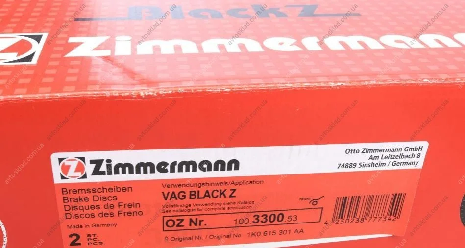 Диск гальмівний ZIMMERMANN 100.3300.53